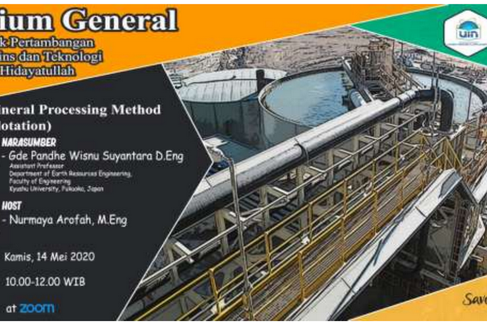 STUDIUM GENERAL PRODI TEKNIK PERTAMBANGANTEMA: “MINERAL PROCESSING METHOD (FLOTATION)” 2020-05-14 By: andrew On: 14/05/2020 In: SG - Praktikum - Dosen Tamu