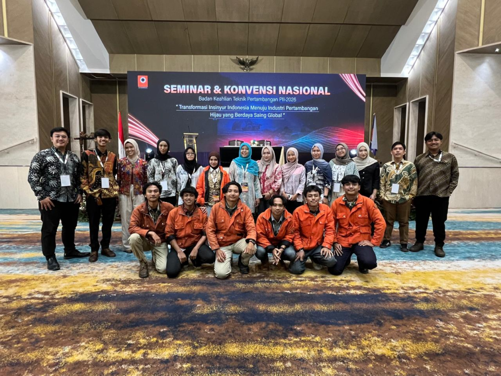 Sejumlah dosen dan mahasiswa Program Studi Teknik Pertambangan turut berpartisipasi dalam kegiatan Seminar & Konvensi Nasional yang diselenggarakan oleh Badan Keahlian Teknik Pertambangan Persatuan Insinyur Indonesia (BKTP PII) tahun 2026. Kegiatan ini mengusung tema “Transformasi Insinyur Indonesia Menuju Industri Pertambangan Hijau yang Berdaya Saing Global.”